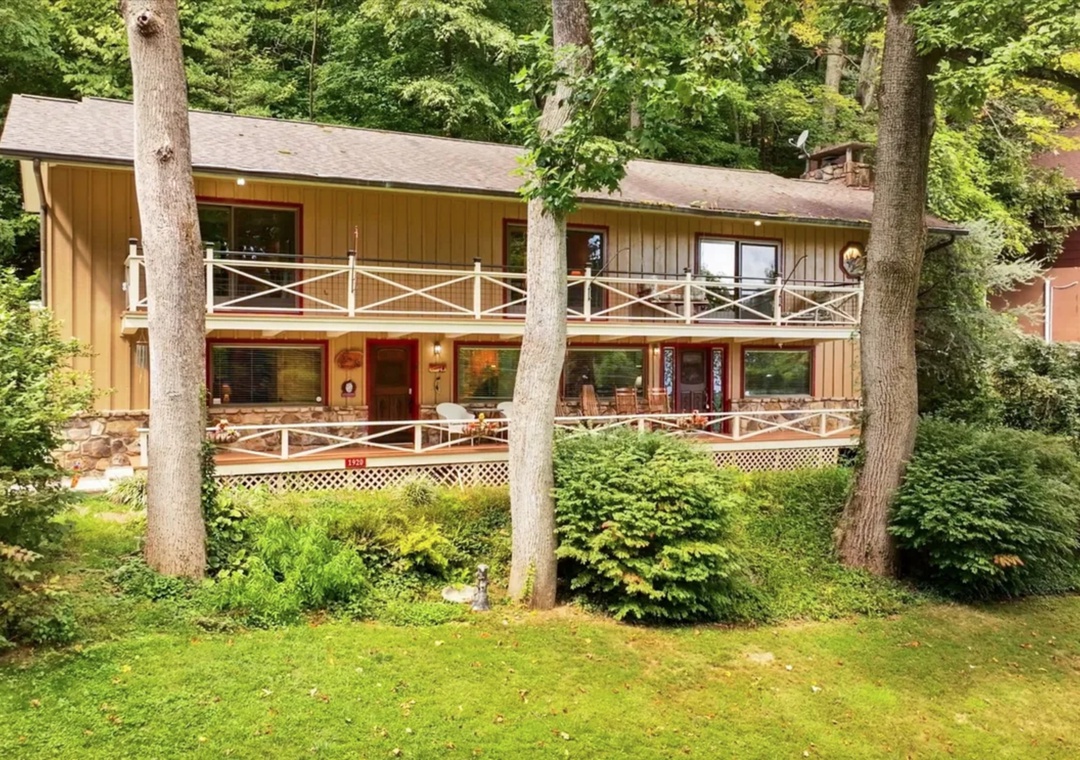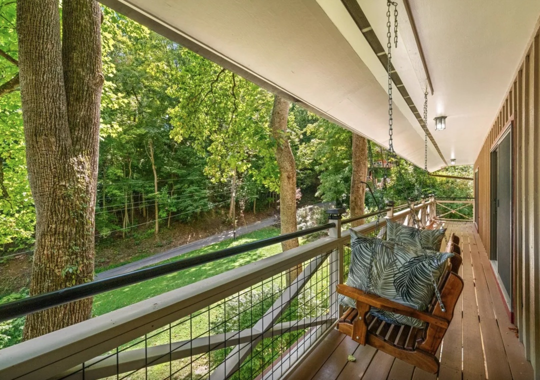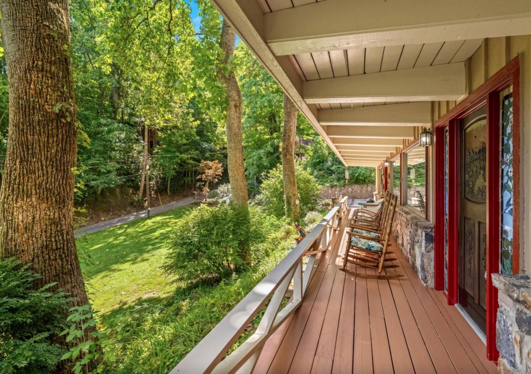 Two full-length decks with rocking chairs, a porch swing, and space to relax