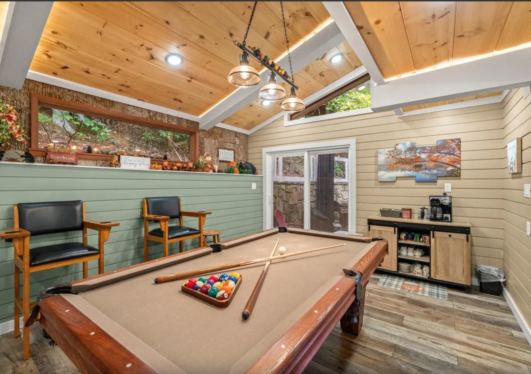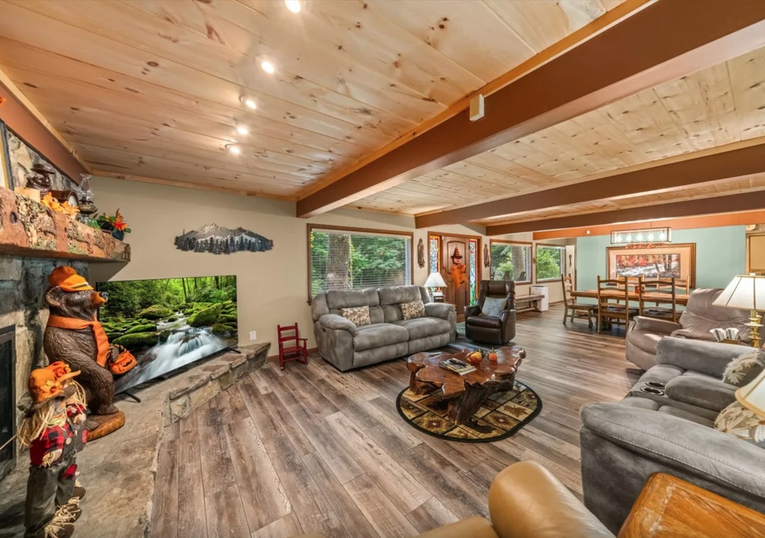This inviting cabin makes an immediate impression as you arrive down the scenic driveway, surrounded by lush greenery. With four spacious bedrooms and fun-filled amenities, Bear Crossing comfortably hosts up to 12 guests, making it perfect for family vacations, group trips, or mountain retreats.