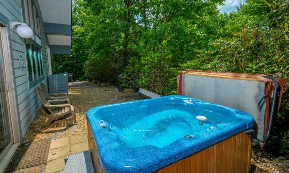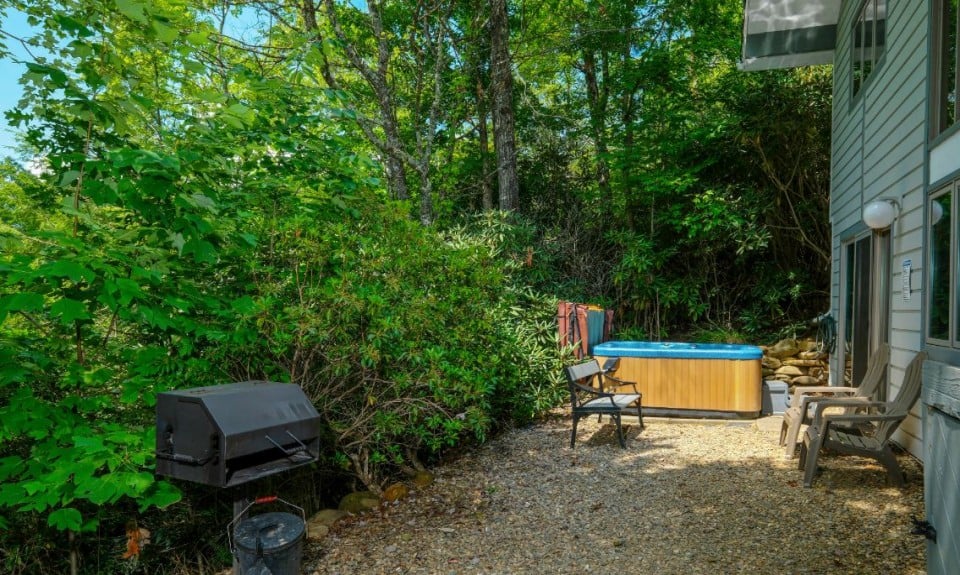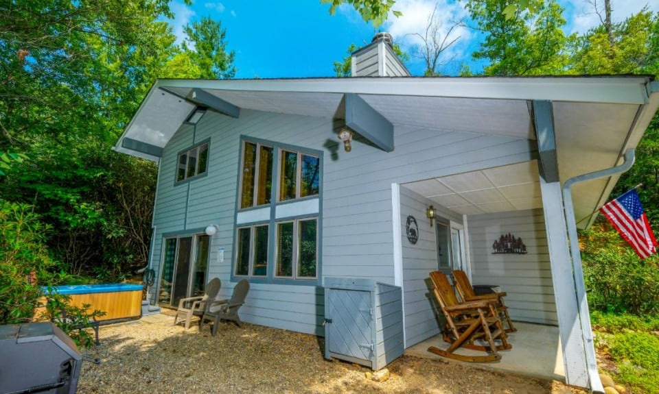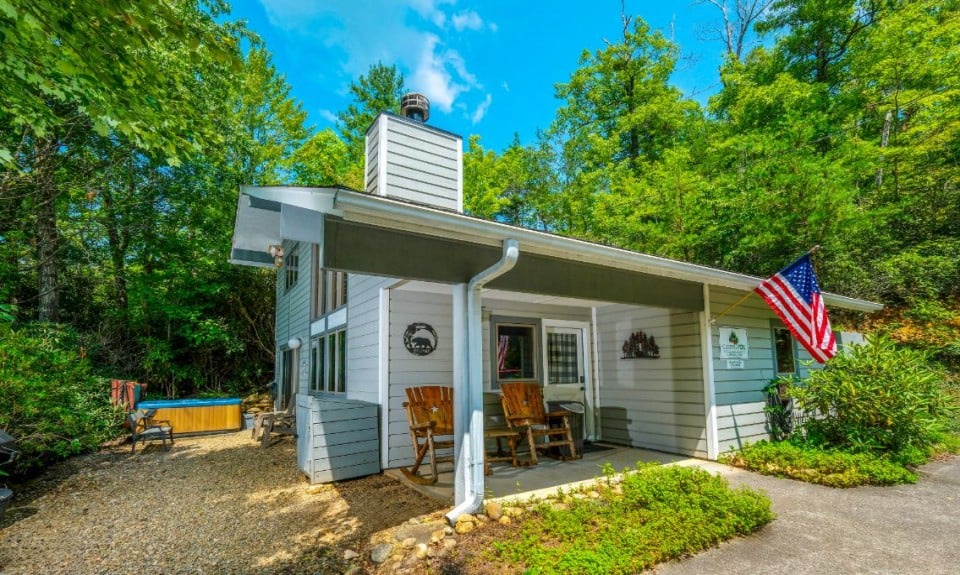 Take in the crisp mountain air from the front porch with rocking chairs, soak in the private hot tub under the stars, or fire up the grill for a cookout. There’s also a sitting area and easy entry via the paved, semi-private driveway with space for 3 vehicles and zero entry steps.