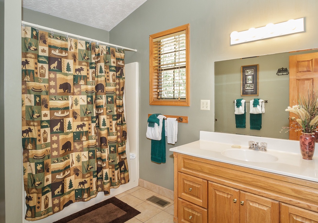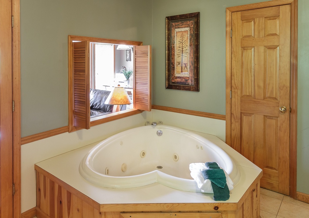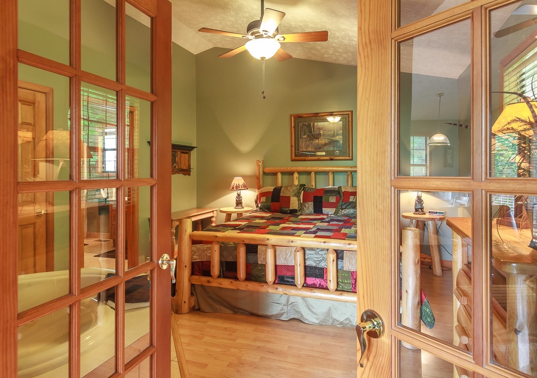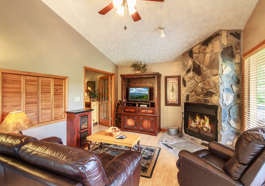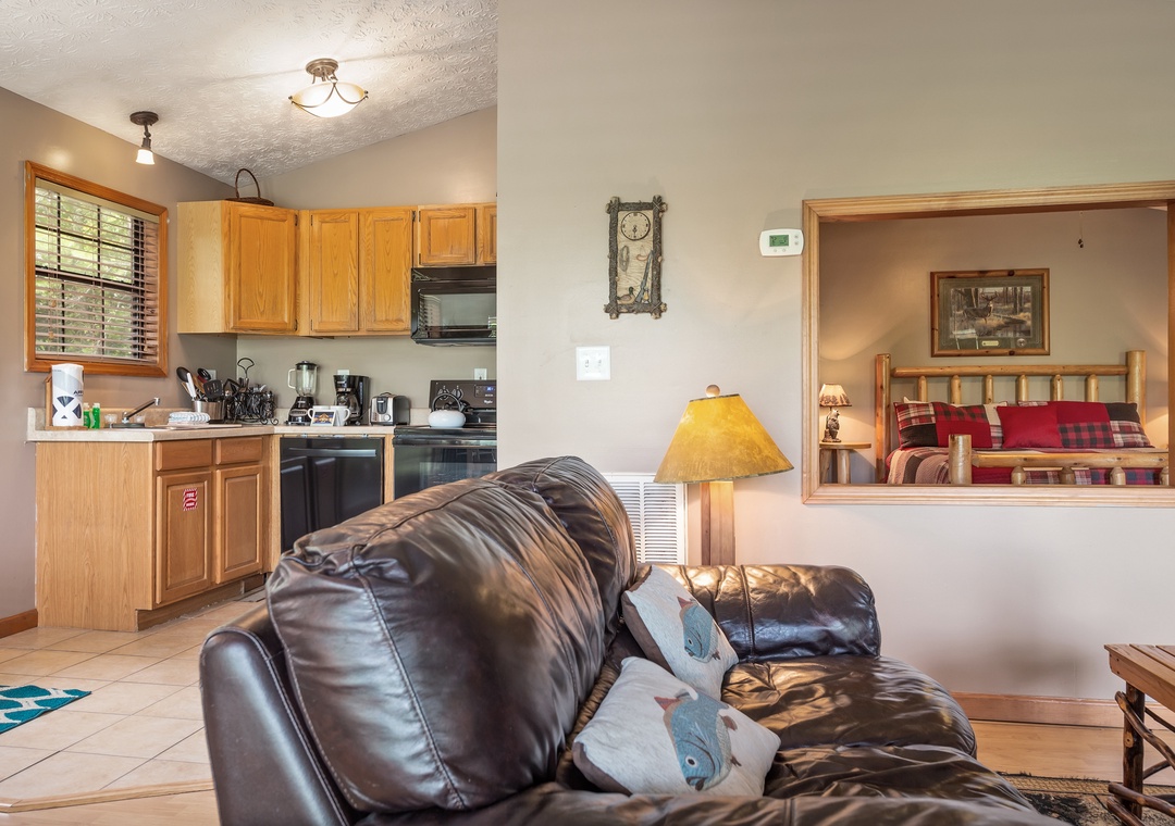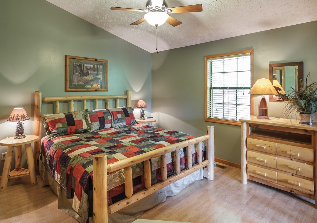 Perfect for honeymooners or just a getaway with your special someone. Decorated with a mountain bear/fishing theme, you immediately feel at home in your mountain surroundings. King size bedroom with jacuzzi tub and full bath.