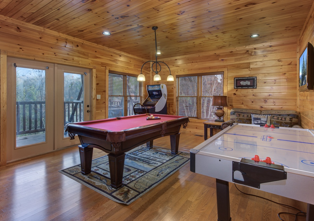 Step inside to find three luxurious master suites and two additional half baths—ideal for families, couples, or groups traveling together. The open-concept main level provides a warm, inviting space for meals and movie nights, while the dedicated theater room, large game room, and two outdoor decks offer endless opportunities for fun and relaxation.