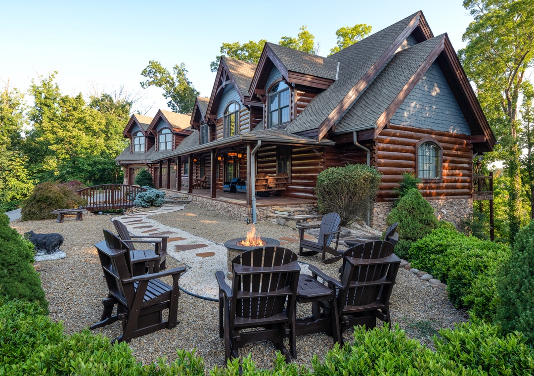 Two beautiful outdoor pools conveniently located inside the resort for your enjoyment. One of them is within walking distance to your Getaway Cabin. Outdoor tables and chairs and restroom facilities make them a wonderful place to while away the afternoon hours if you decide not to go to town for the day. Pools are seasonal - open Memorial Day through Labor Day each year. 7000 Square feet of luxurious living space. Beds - will sleep total of 35 Main floor: -King bed master suite with fireplace, shower and soaking tub, private closet large enough to hold Pak n play comfortably -Bedroom with Queen bed and twin over queen bunk bed -King bed with fireplace -----The above two bedrooms share a large full bath with step in shower with grab bar Half bath located on this floor for everyone’s convenience