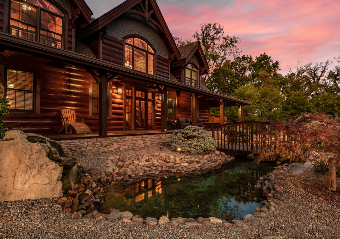 The outdoor spaces for this lodge really sets it apart. Usually to have such a wonderful location you have to sacrifice privacy and outdoor amenities but not so with Grand Mountain Lodge. The front porch of the lodge overlooks a small pond with a beautiful cascading stone waterfall feature. A bridge crosses over the pond so you can take a stroll and enjoy the water up close.