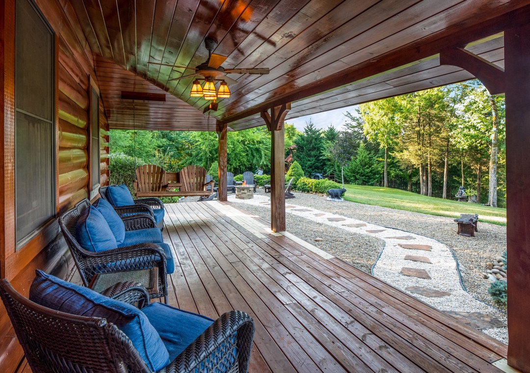 Thank you for your kind words, Dena. We're glad the spacious home and yard met your expectations and that you enjoyed the front porch. We hope to welcome you back to Stony Brook Cabins soon.Stony Brook Cabins, LLC staff