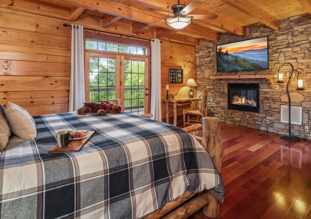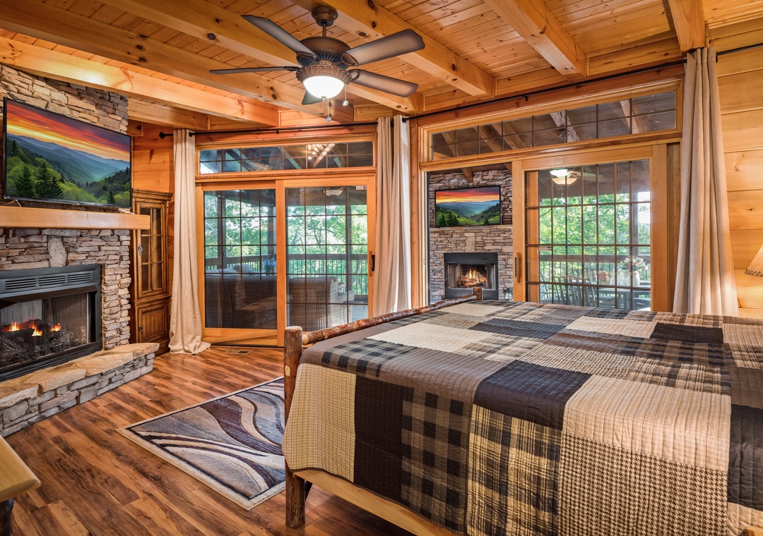 Lower Level -King bed master suite has shower and jacuzzi tub and Queen over queen bunk bed sleeps 6 Sleeper Sofa near the wet bar area For your convenience, you might want to consider the Smoky Mountain Grocery to handle your grocery shopping prior to your arrival. He will coordinate with us and have everything inside and put away when you arrive. Convenient! Inexpensive. True Value. We recommend this service.