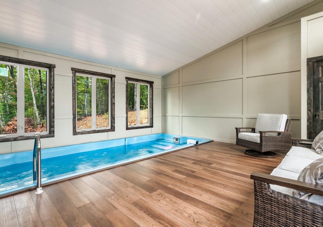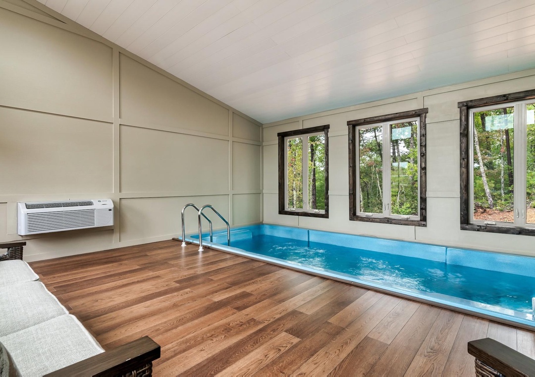 Step outside to enjoy a cup of coffee on the deck, soak in the hot tub, or light the firepit for an evening of s’mores under the stars. The private indoor pool house provides a unique and luxurious way to swim day or night, rain or shine.