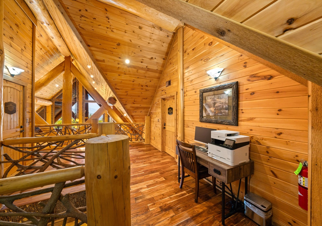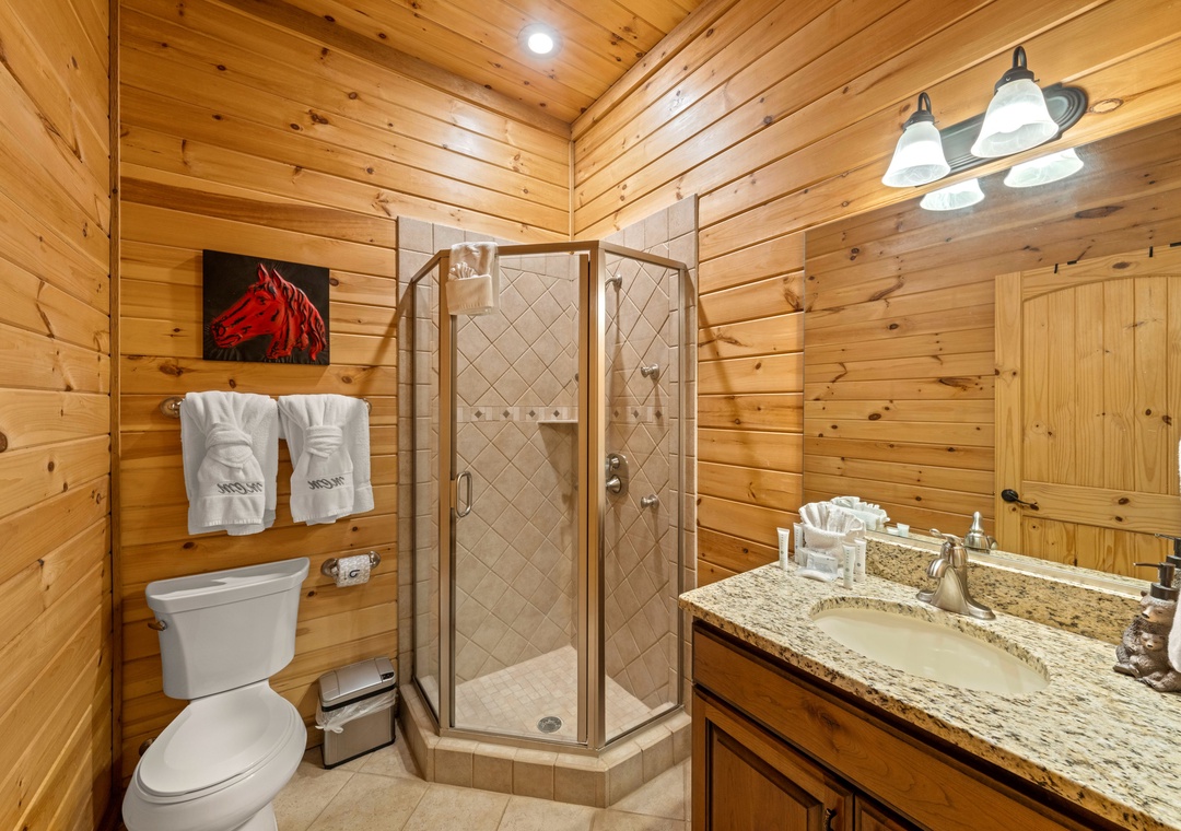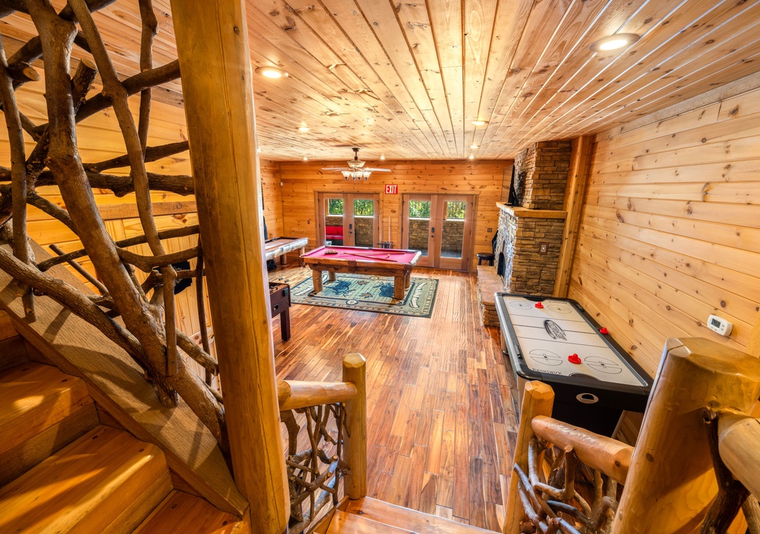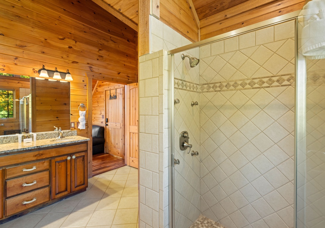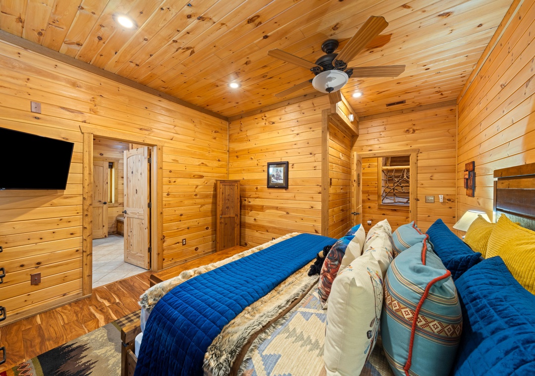 Bearadise – A tropical-themed king bedroom (has two full bathrooms for access in the terrace level hallway), featuring Winston’s Maui escape. Includes a sleeper sofa.