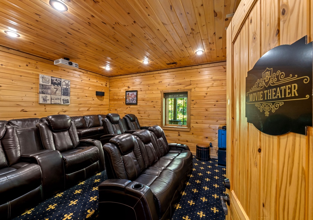 Located on the walk-out terrace level, Luxe Bear Lodge’s private theater room is a guest favorite. Enjoy: