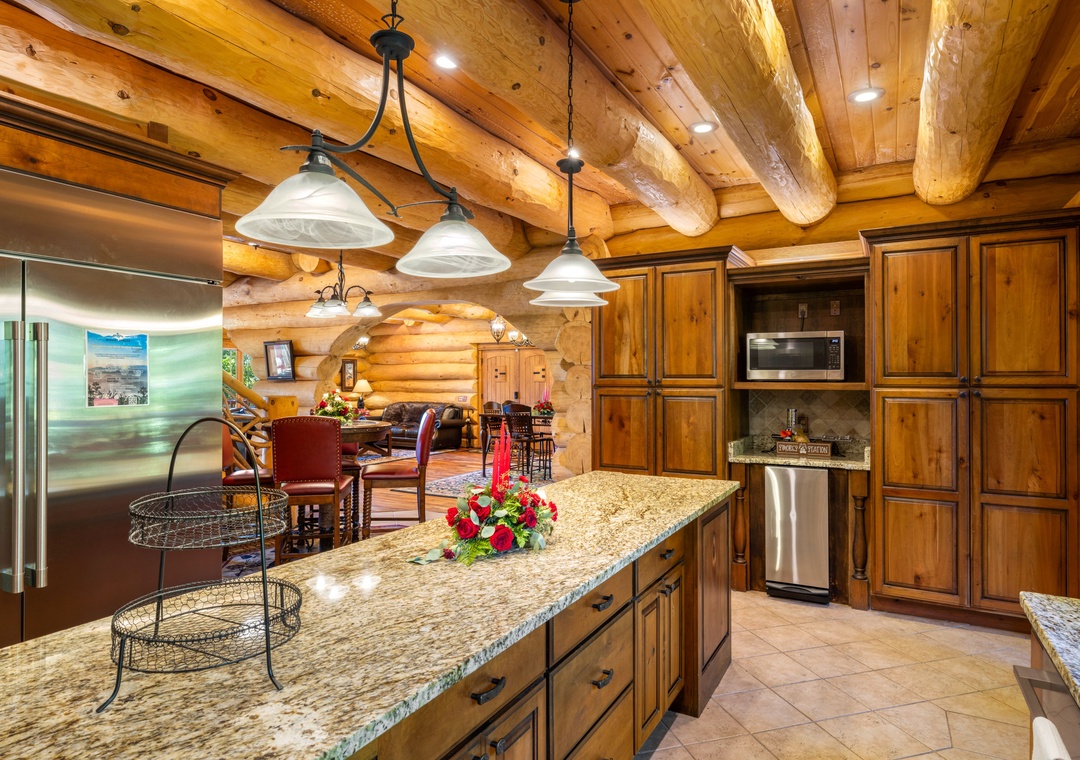 The fully equipped chef’s kitchen is designed for entertaining, with: