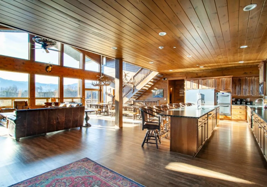 This place is massive! Spacious enough to accommodate large groups yet enough privacy to feel like you’re at home. The view is immaculate with 180 degree views from the patios on the 2nd and 3rd floor. We had a few issues that Stony Brooke solves right away. One being the stove losing power and the second being a bear that broke our trash enclosure and scattered trash everywhere. They sent someone right away to clean it up and properly secure the trash.