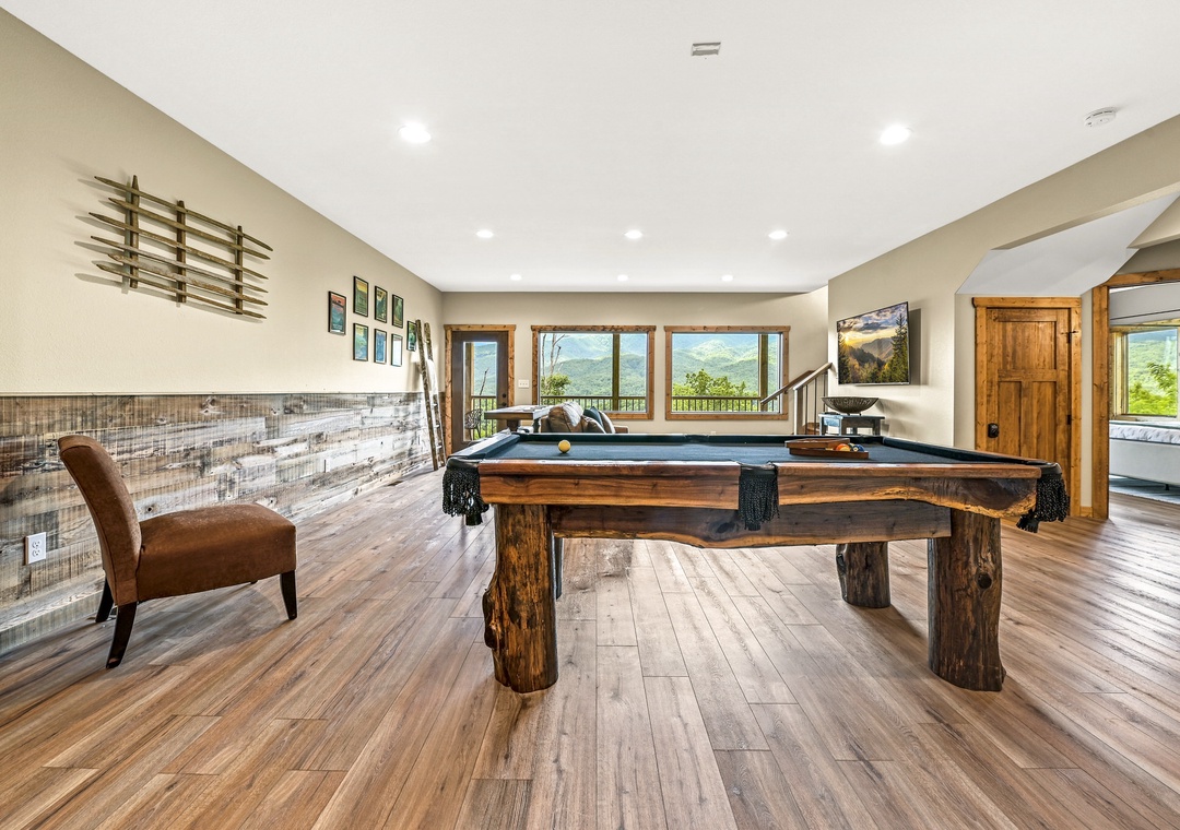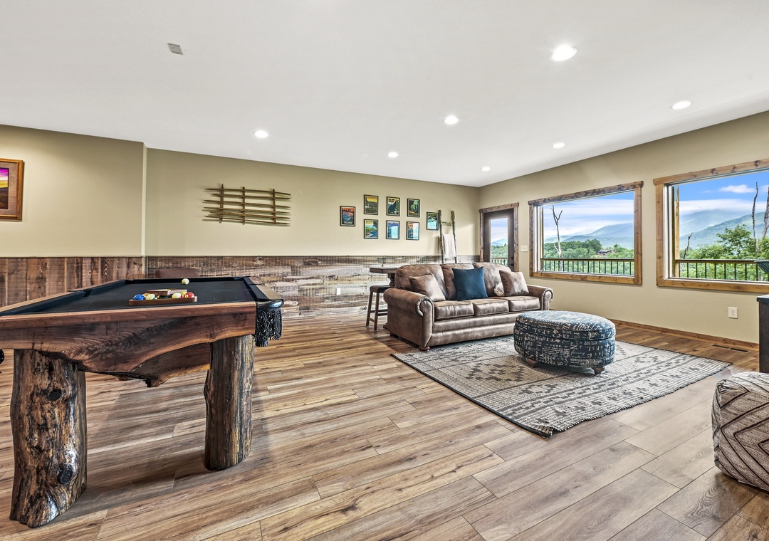 The cabin is located high on a mountain and the surroundings are breathtaking. Every morning we would enjoy the fantastic sunrise over the mountains. Evenings were spent playing pool or on the balconies either enjoying the jacuzzi or sipping cocktails with the fire pit on. It was an enjoyable family reunion with our grown up children and grandchildren. The cabin had something for each age group to do. And Gatlinburg is a short drive away!!- Reviewed On: 3/20/2025
