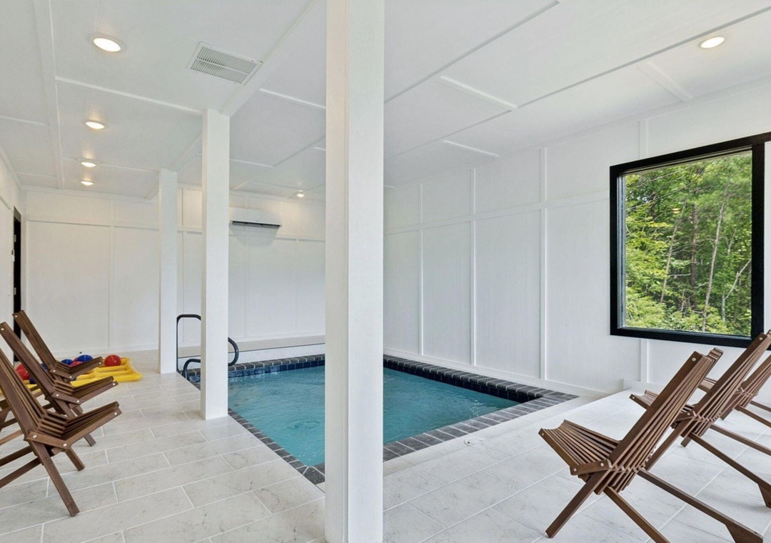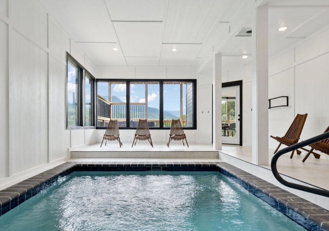 Entertainment and leisure abound with a large game room, and the highlight of the home—an extensive indoor pool area that offers year-round enjoyment, no matter the weather. Each level opens to huge covered decks, ideal for outdoor dining, morning coffee, or unwinding while admiring the sweeping mountain views.