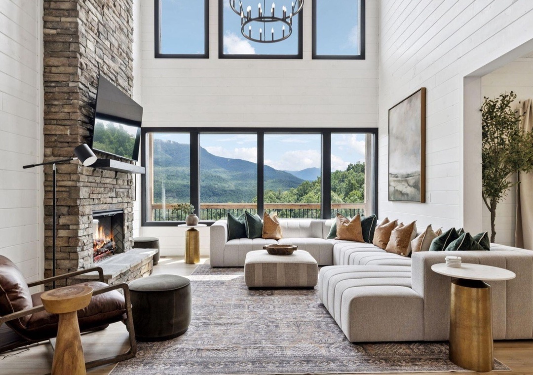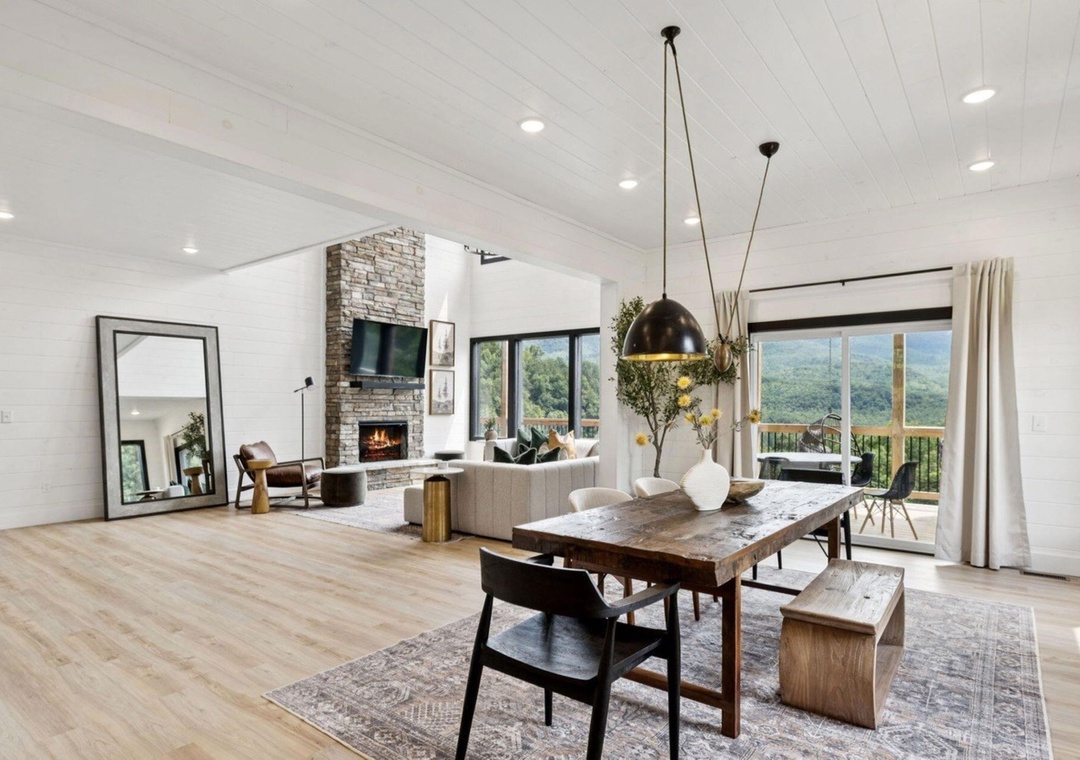 Step inside to a massive open-concept living, dining, and kitchen area filled with natural light from floor-to-ceiling windows. Gather around the beautiful stone fireplace and take in the surrounding mountain scenery from every angle. The main level’s seamless flow and high-quality furnishings create the perfect atmosphere for comfort and connection.