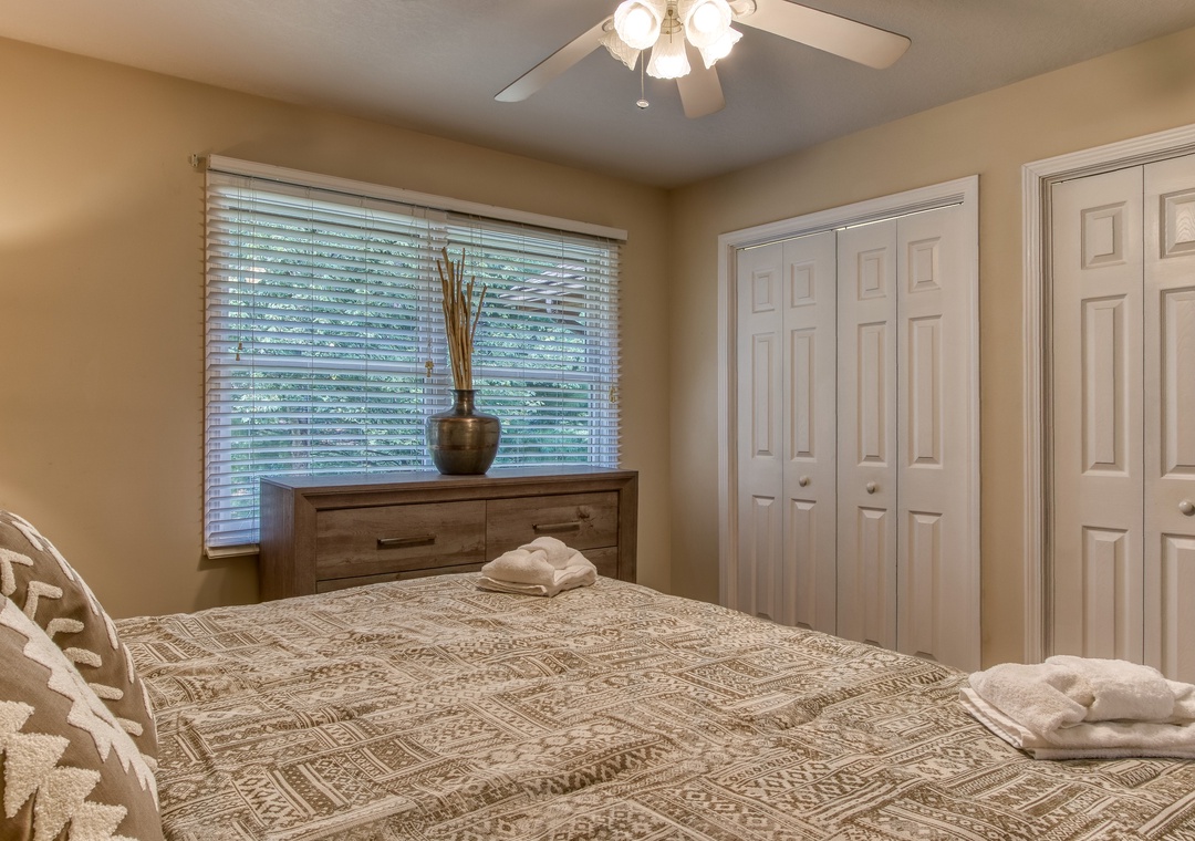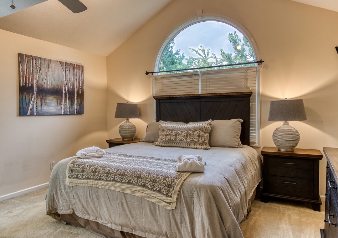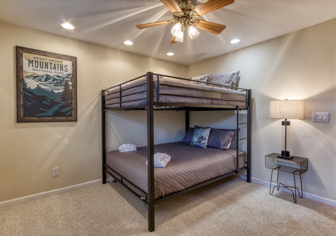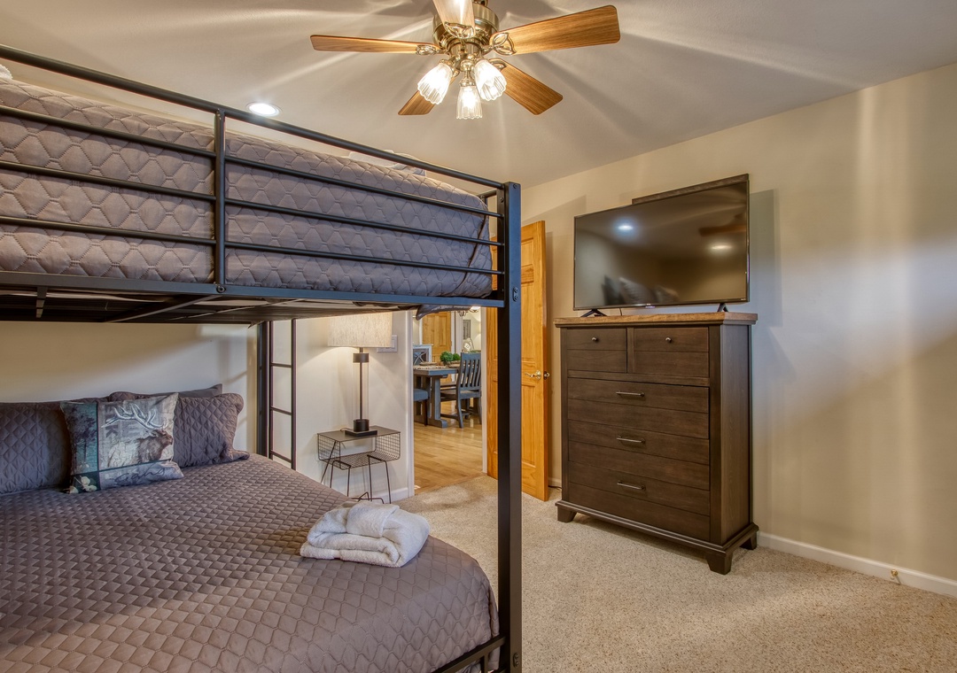 Downstairs Bedroom 2: Queen-over-Queen bunk beds