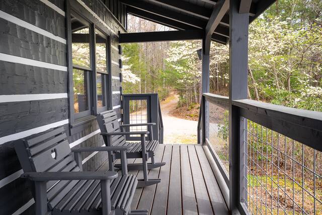 Wonderful cabin! Comfortable and clean! Great kitchen with all necessary cooking supplies and appliances. Quiet and private, 2 porches with hot tub on back porch. Love the rocking chairs and view of the mountains! Staff was wonderful to work with!- Posted: 6/2/2024