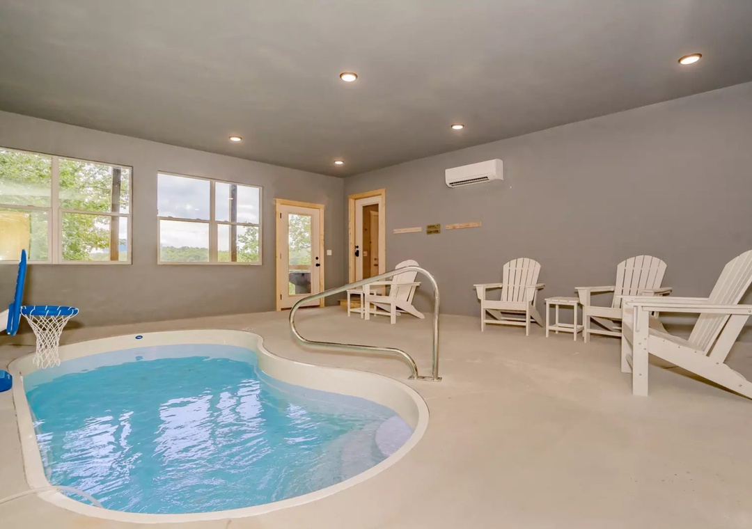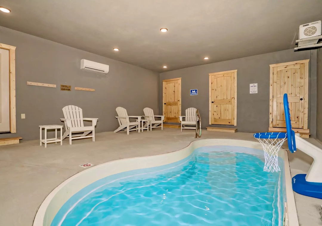 Private Indoor Pool: Make a splash year-round in your very own heated indoor pool. A full bathroom is located inside the pool room for added convenience.