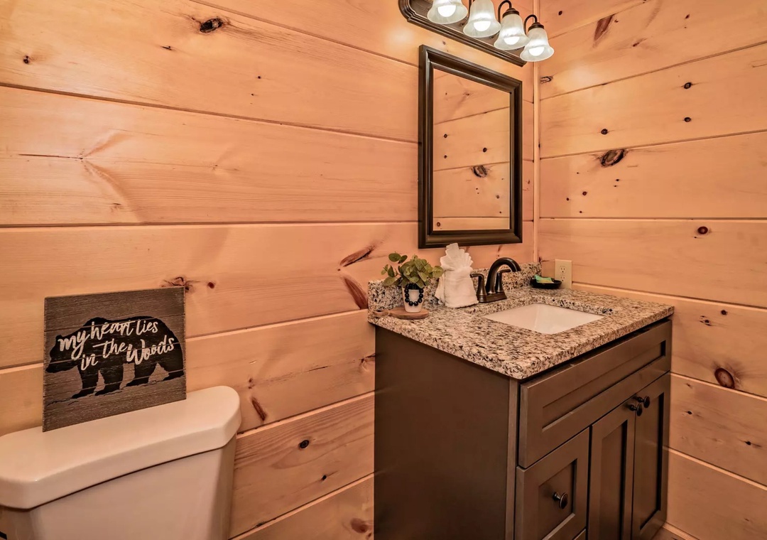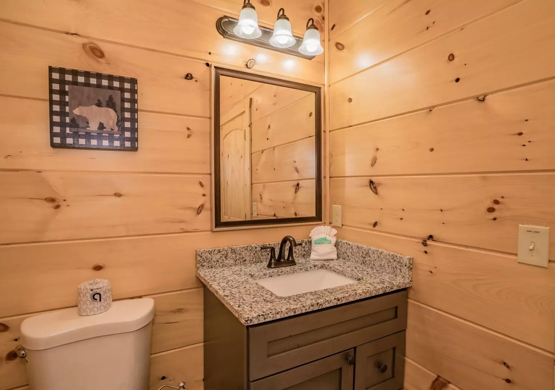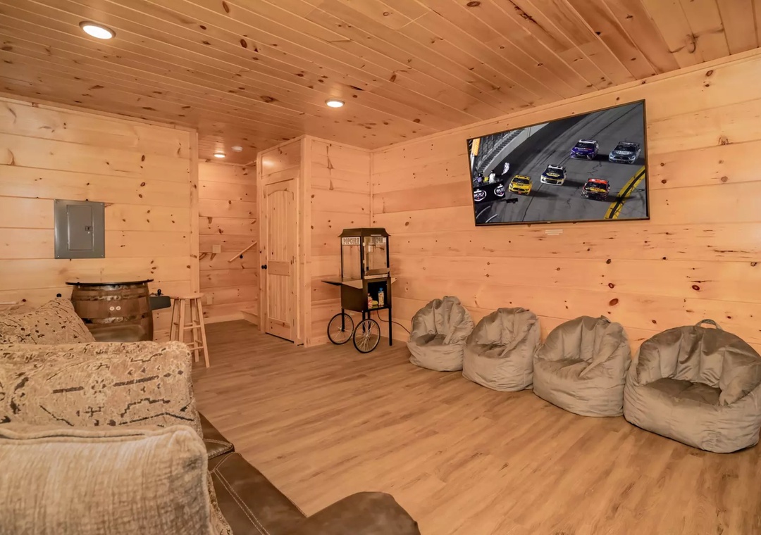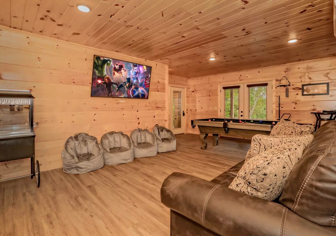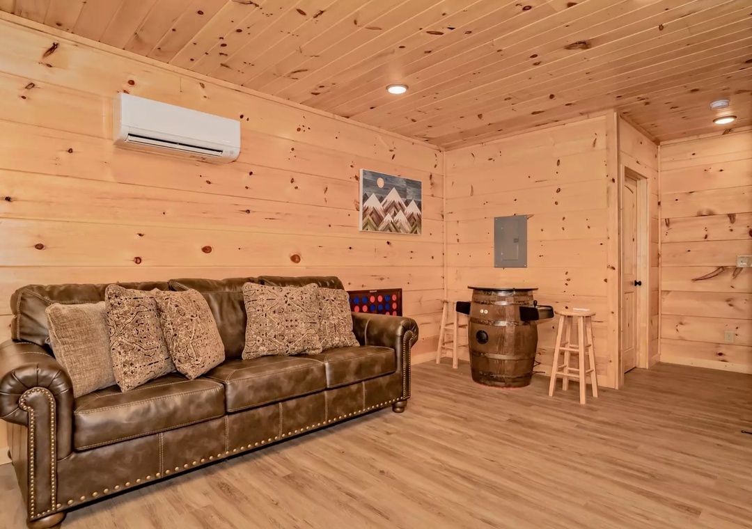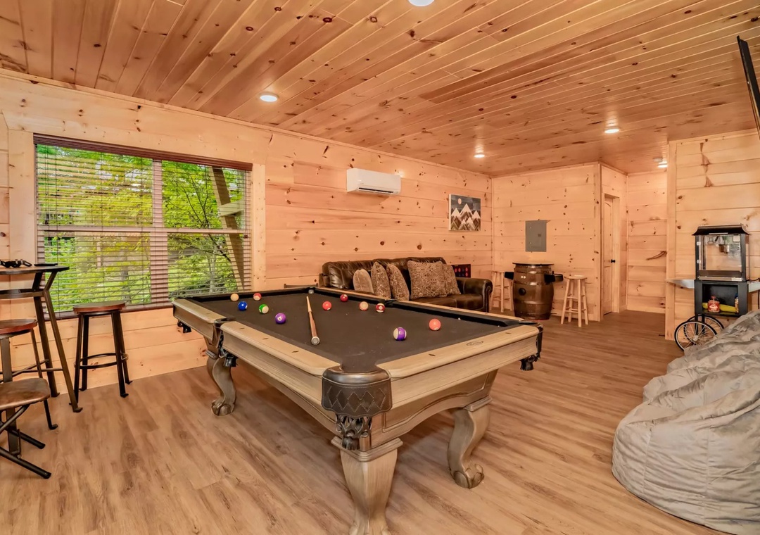 Game Room: Enjoy the multicade arcade, play a few rounds of pool, or relax on the sleeper sofa. A half bath is conveniently located nearby.
