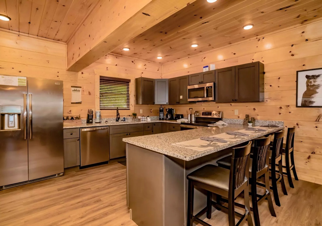 Kitchen & Dining: Fully equipped and ready for your culinary creations. Enjoy meals at the dining table with seating for 6 and additional bar seating for 4.