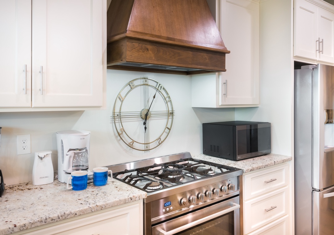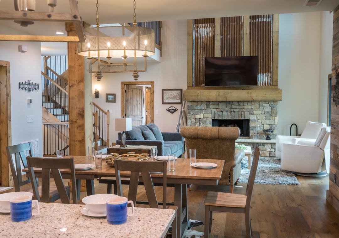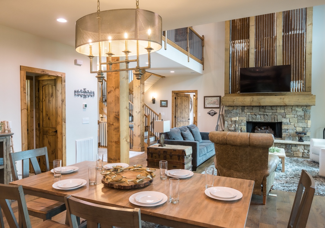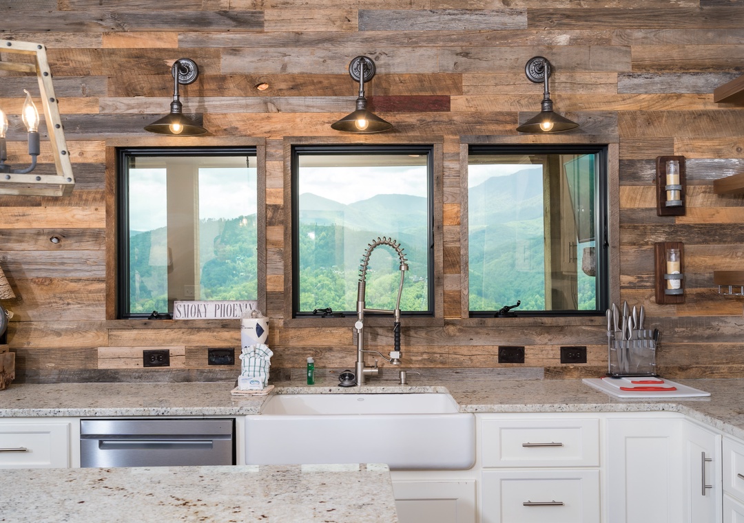 Let’s start in the modern, bright kitchen which has everything you need to prepare a 4 course meal or enjoy a quick breakfast before you head out for the day. Beautiful and functional – everyone will enjoy hanging out and eating in the kitchen at Smoky Mountain High. Laundry room is located just off the kitchen.