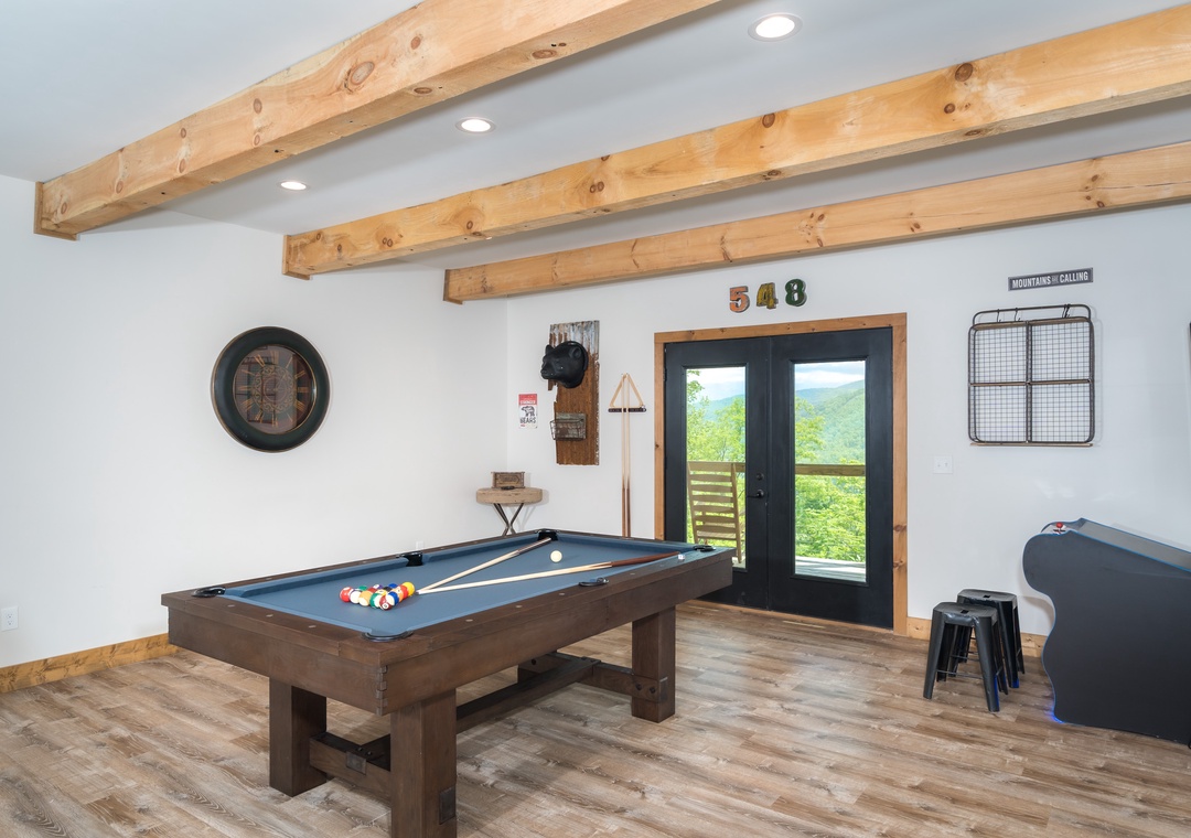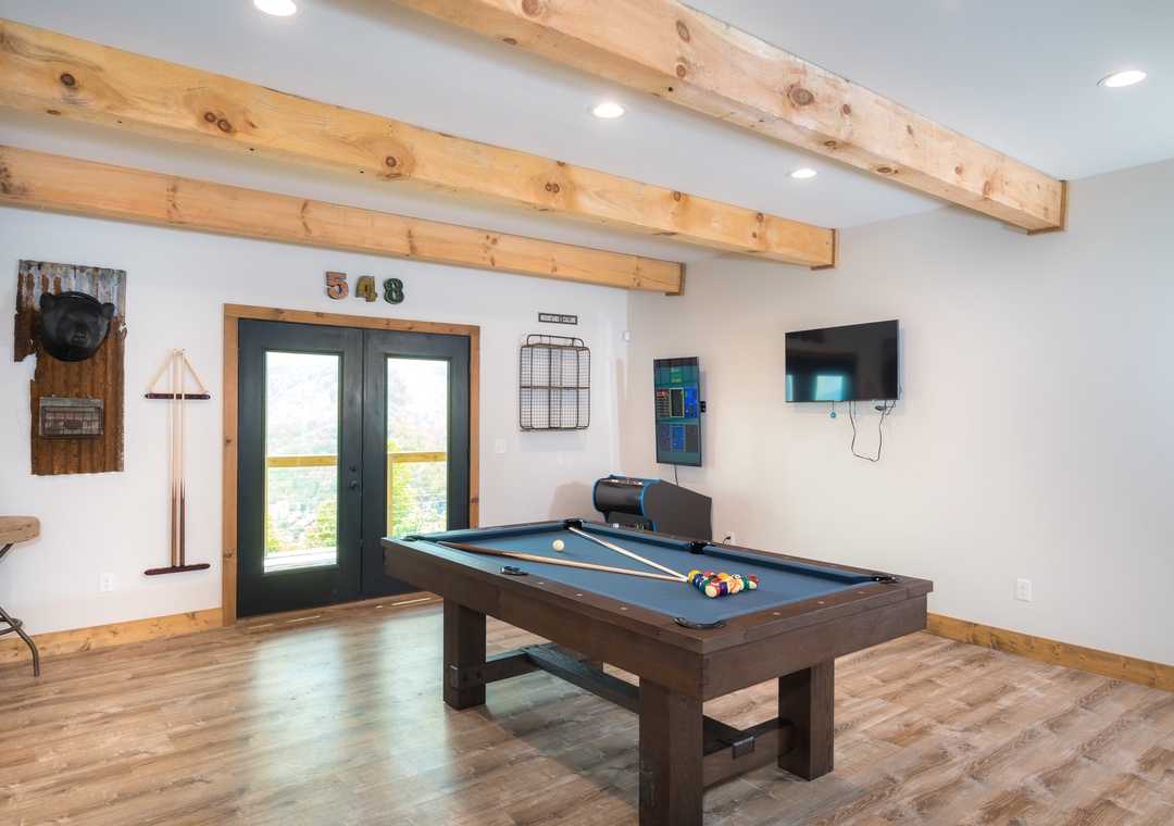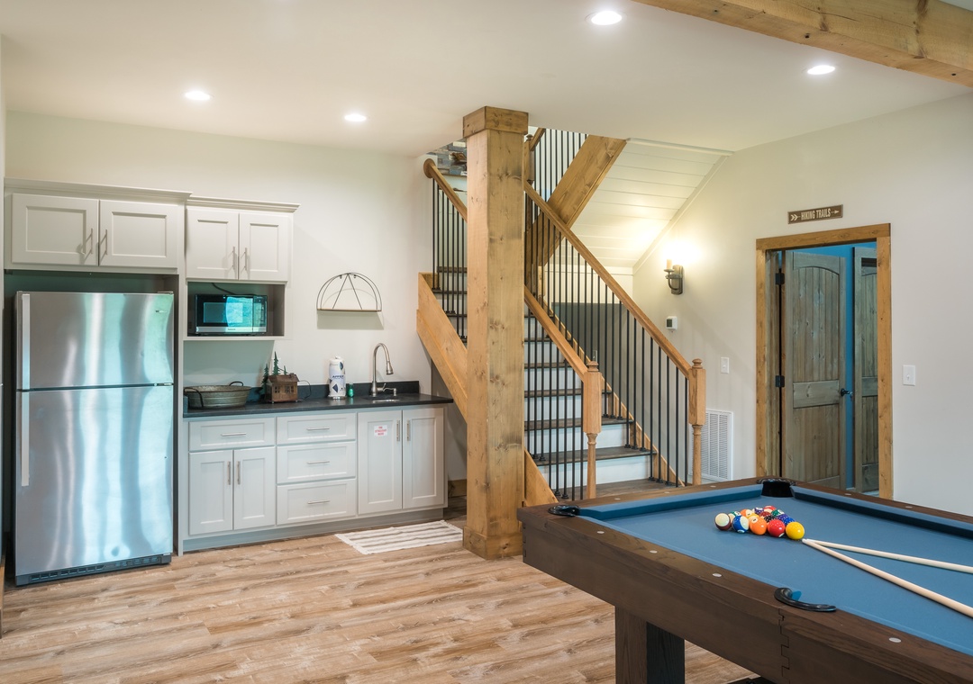 The game room is located on the lower level. Kitchen area for making snacks. Pool table for hours of gaming fun. This is where you will make memories for a lifetime. Have fun! Compete! Relax! It’s your vacation!
