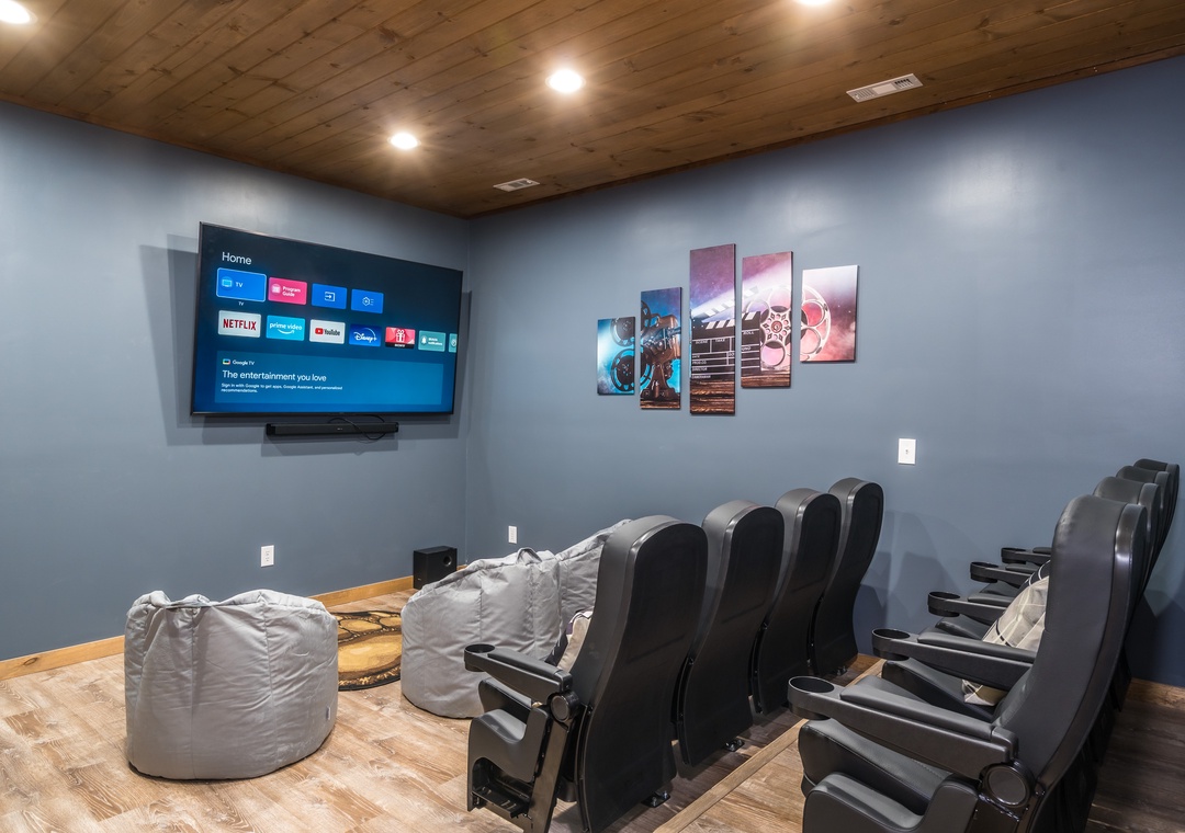 Just off the game room is your own private home theater with comfy seating and Giant screen. Great place to hang out and watch the game or binge watch your favorite show on Netflix. It’s your vacation!