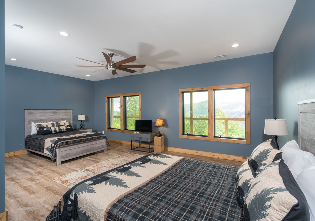Large bedroom - with two queen beds to sleep 4 and a full hall bath. This room is extra large and comfortable. It works well for the family or for all the kids to hang out together. Plenty of room and it’s on the lower level next to the game room.