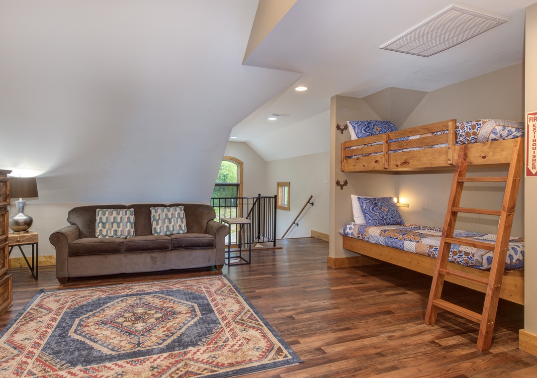 Upper level: 2 king master suites, sleeper sofa in loft area