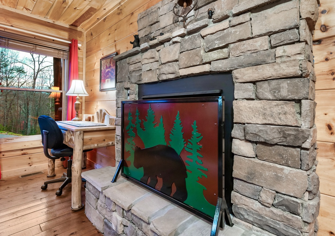 Outside, the deck is a serene retreat with a six-person hot tub, gas grill, and outdoor seating surrounded by the sights and sounds of nature. Keep an eye out — it’s not uncommon to spot bears wandering through the woods nearby!