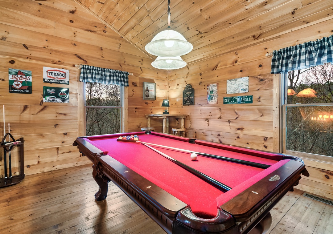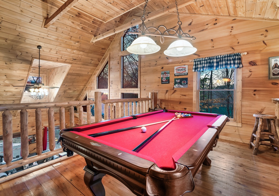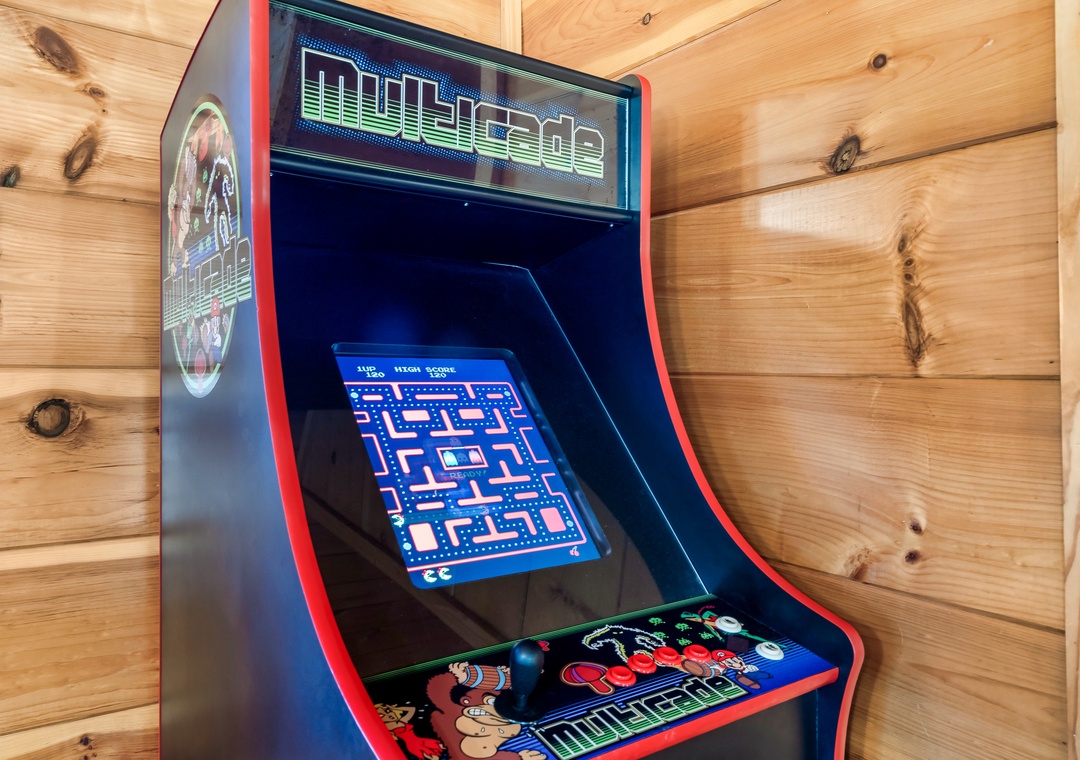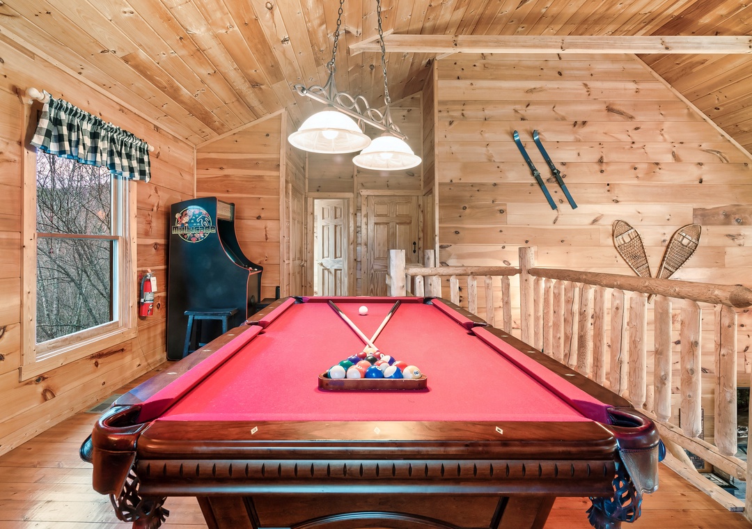 Just above the living room, the open game loft provides hours of entertainment with an arcade machine and pool table, along with an additional hangout area for kids and adults alike. You’ll also have access to a private laundry closet with a washer and dryer, detergent included, along with an iron and ironing board for your convenience.